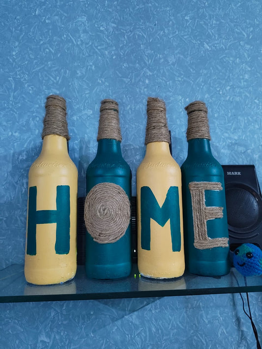 Set of 4 Hand-Painted Decorative Bottles – “HOME” Theme